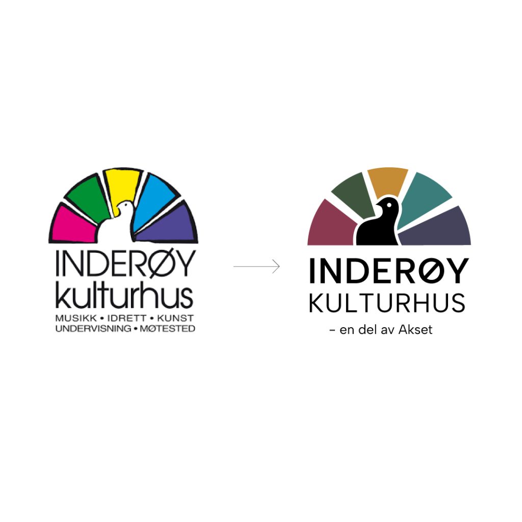 I 2022 gjorde vi en oppussing av logoen til Inderøy Kulturhus. Behovet var en tydeligere logo som er mere fleksibel i bruk. Vi tok utgangspunkt i eksisterende logosymbol(se siste slide) og laget en mer tydelig og brukervennlig logo. I tillegg jobbet vi med fargepaletten og typografien.